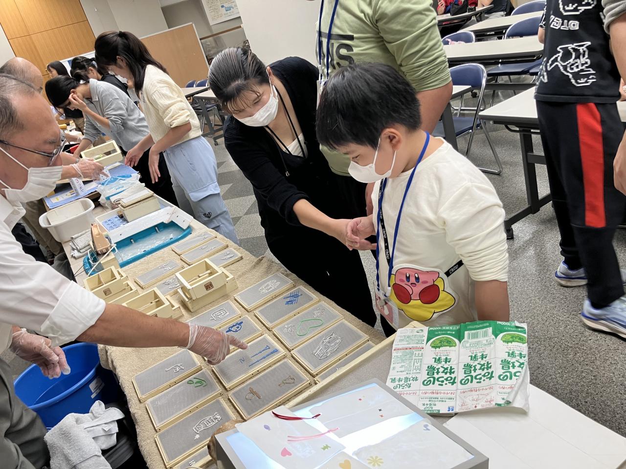 あいにくの雨で遊具では遊べませんでしたが、公園内にある紙の博物館で、紙すき体験をしてきました〜(^∇^)
