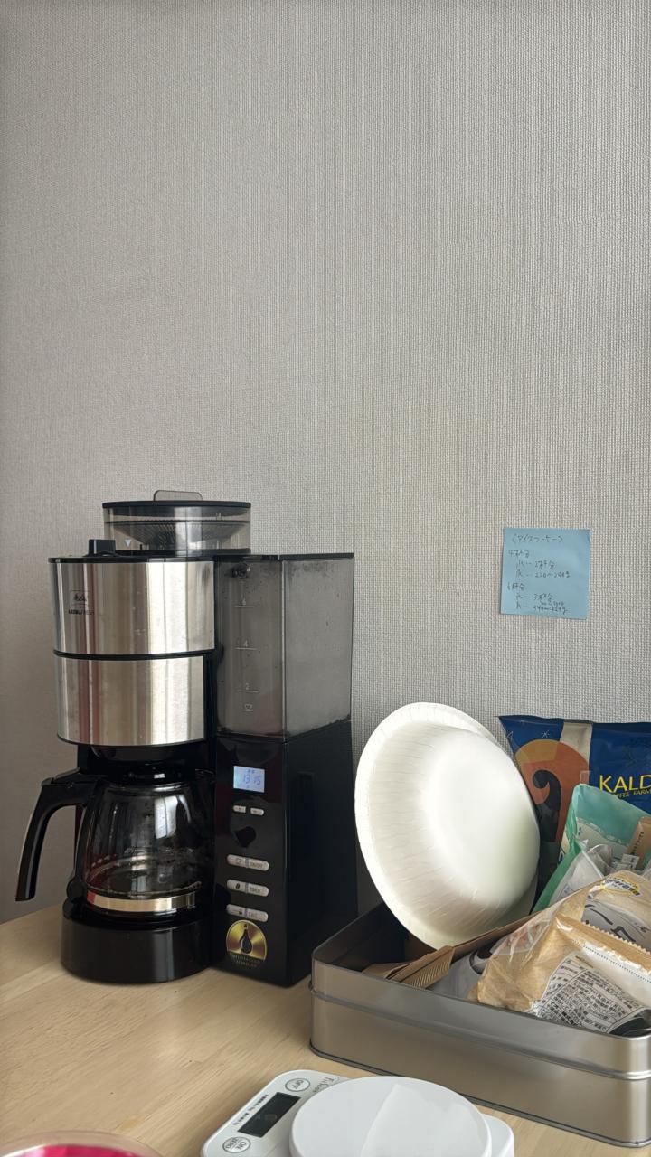 先日より、休憩室にコーヒーメーカー設置されました☆ 機械が、豆をその場で挽いてくれるので匂いもすごくいいんです! 水や氷の分量もしっかり須藤課長がメモしてくれてるので 美味しいコーヒーでいつでものむことができます。