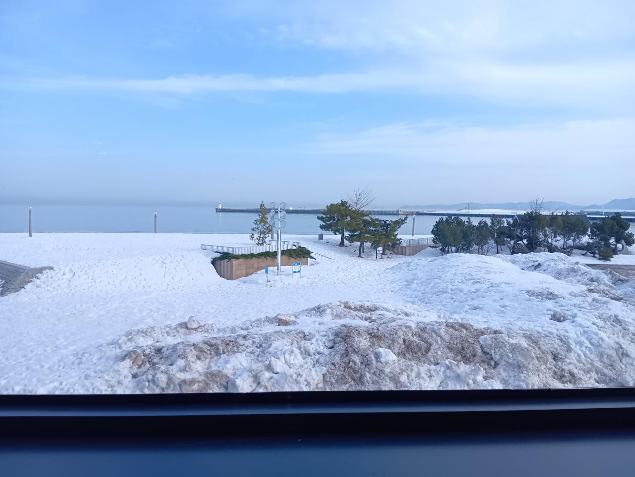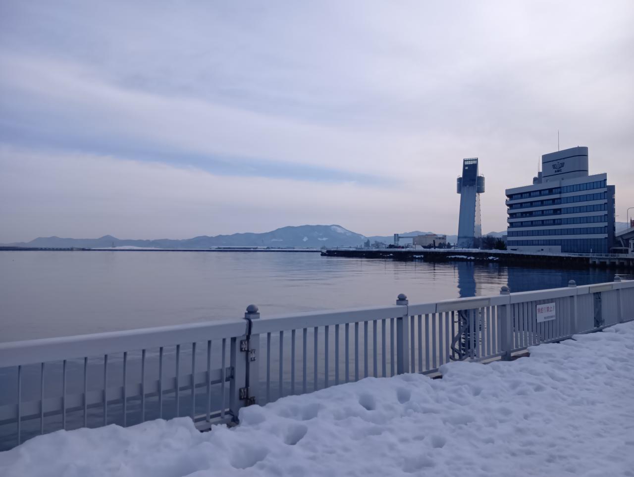 青森の大雪も一段落といった感じの休日、久しぶりに海を見に朝散歩。