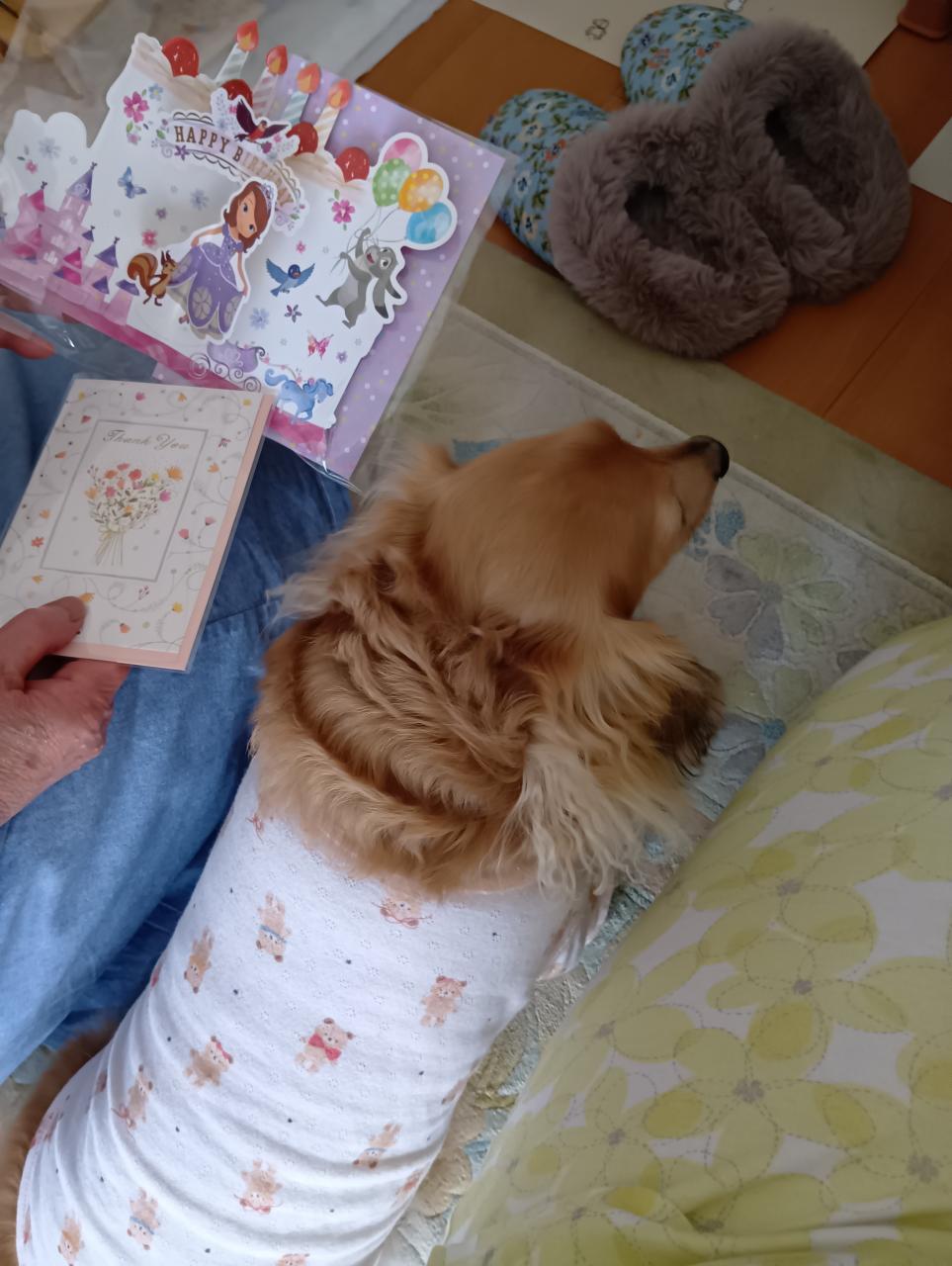 ちょびっと寝込んだ時に母と姪っ子ちゃんたちのカードを選んでいたら、いつの間にかワンコちゃんが母とわたしの間に鎮座ましておりました♡